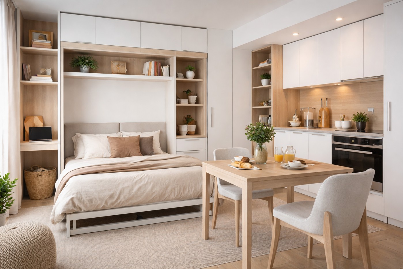 Dans un petit appartement, chaque meuble doit mériter sa place. Le mobilier multifonction est la clé de l’optimisation de l’espace. Canapé-lit, table extensible, lit escamotable, bureau rabattable : vous devez pouvoir transformer votre pièce en quelques secondes. Moins il y a d’éléments distincts, plus l’espace paraît fluide. Un meuble sur mesure peut intégrer rangement, bureau et couchage dans un seul module. C’est particulièrement stratégique en studio optimisation. Posez-vous une question simple : ce meuble a-t-il au moins deux fonctions ? Si la réponse est non, il mérite peut-être d’être remplacé. Pensez modularité, pensez flexibilité.