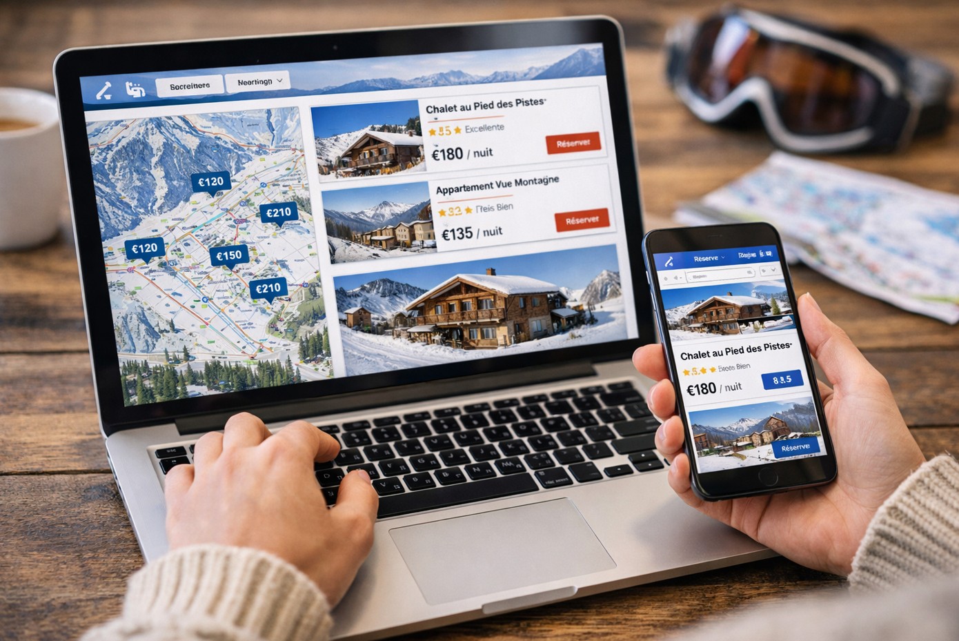 Booking.com propose des hôtels, résidences, appart‑hôtels et parfois des chalets dans la plupart des grandes stations de ski. La plateforme est très utilisée pour les séjours courts, les réservations flexibles et les hôtels au pied des pistes.